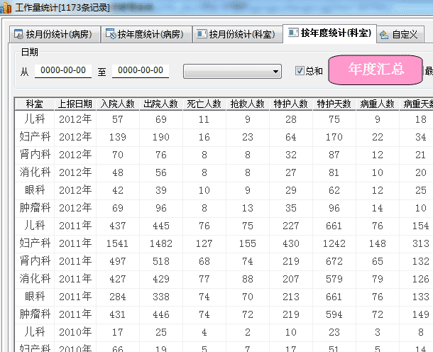 总结:护理工作量报送管理简化了护士长报送数据流程,免除了护理部工作量统计工作。汇总统计、单项统计等功能让数据查看变的很方便。