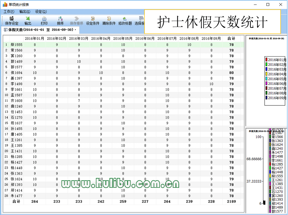排班系统可实现值班人次数、小时数、剩余假期数、值班费自动计算,为护士长减轻工作负担,统计结果准确、清晰。